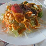 アル ハラム レストラン - ・Buhna Gosht の Salad 上の粉は卓上のチャットマサラ
